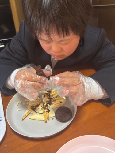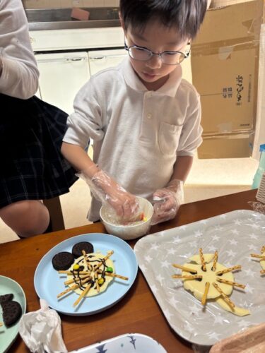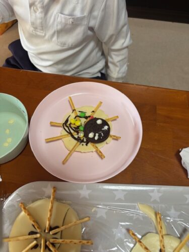準備期間2日目はチョコペンで蜘蛛の巣をかき、