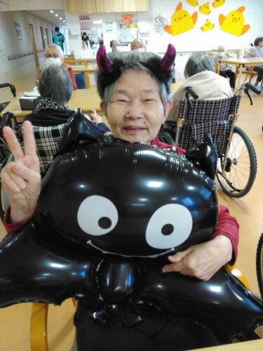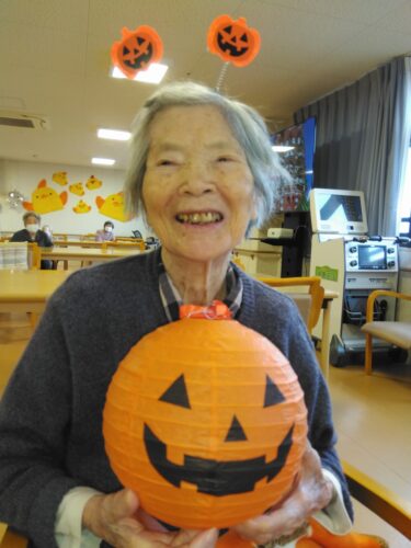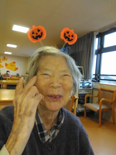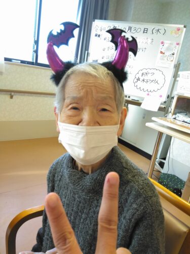 利用者様にもハロウィン気分を味わってもらおうと少しだけ仮装してみました🌚🌚