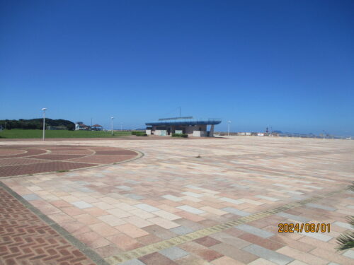 その後は、汐入の里に到着して、少し海を見ようと思ったのですが、日差しが凄く照り返しと暑さで