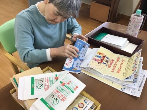 内職仕事の練習でチラシ折り&封入作業に挑戦されたり
