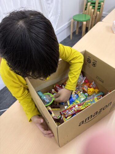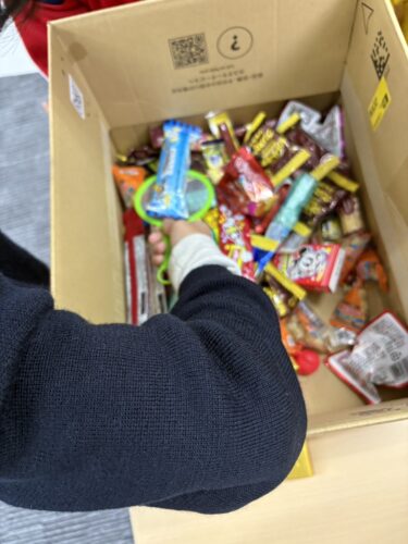 本日はハロウィンイベントでお菓子の掴み取りを行いました。