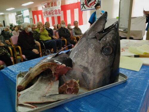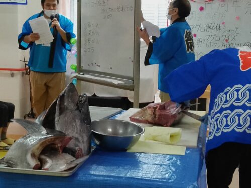 今日の目玉はマグロ🐟🐟の解体ショーです😊