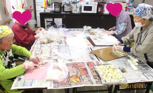 前日には、職員で材料のカット✌☺ 皆様が食べやすい大きさを考えながら、切って行きました。