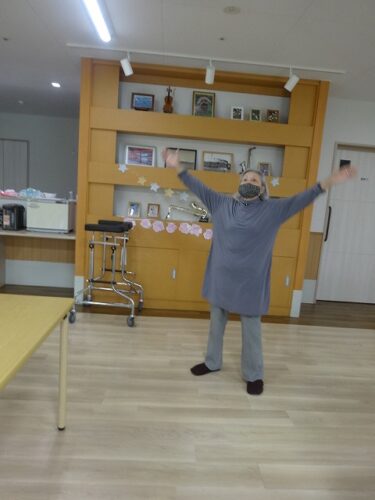 日付の確認後はラジオ体操です