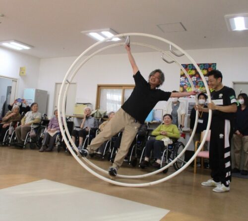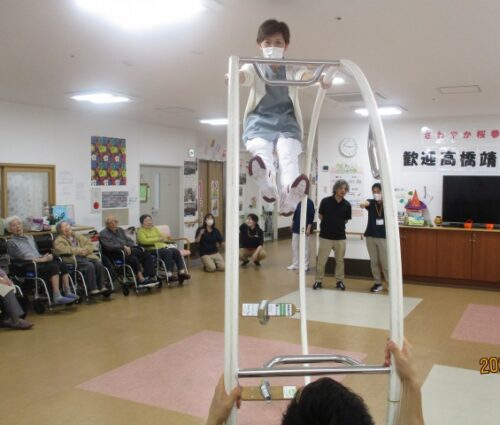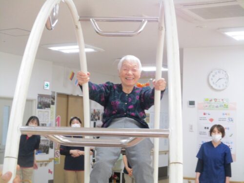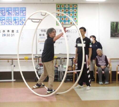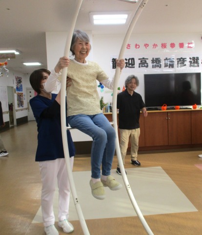 次は看護職員が、輪の間に座ってシーソーのように上下します!