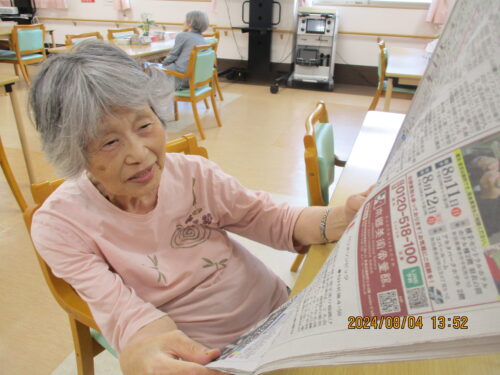 ホールでお花や新聞を読まれていました☆