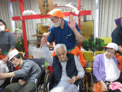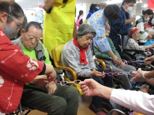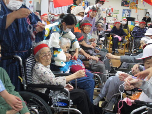 こよりをつなぎ合わせたものを、互いに引っ張り合いますよ