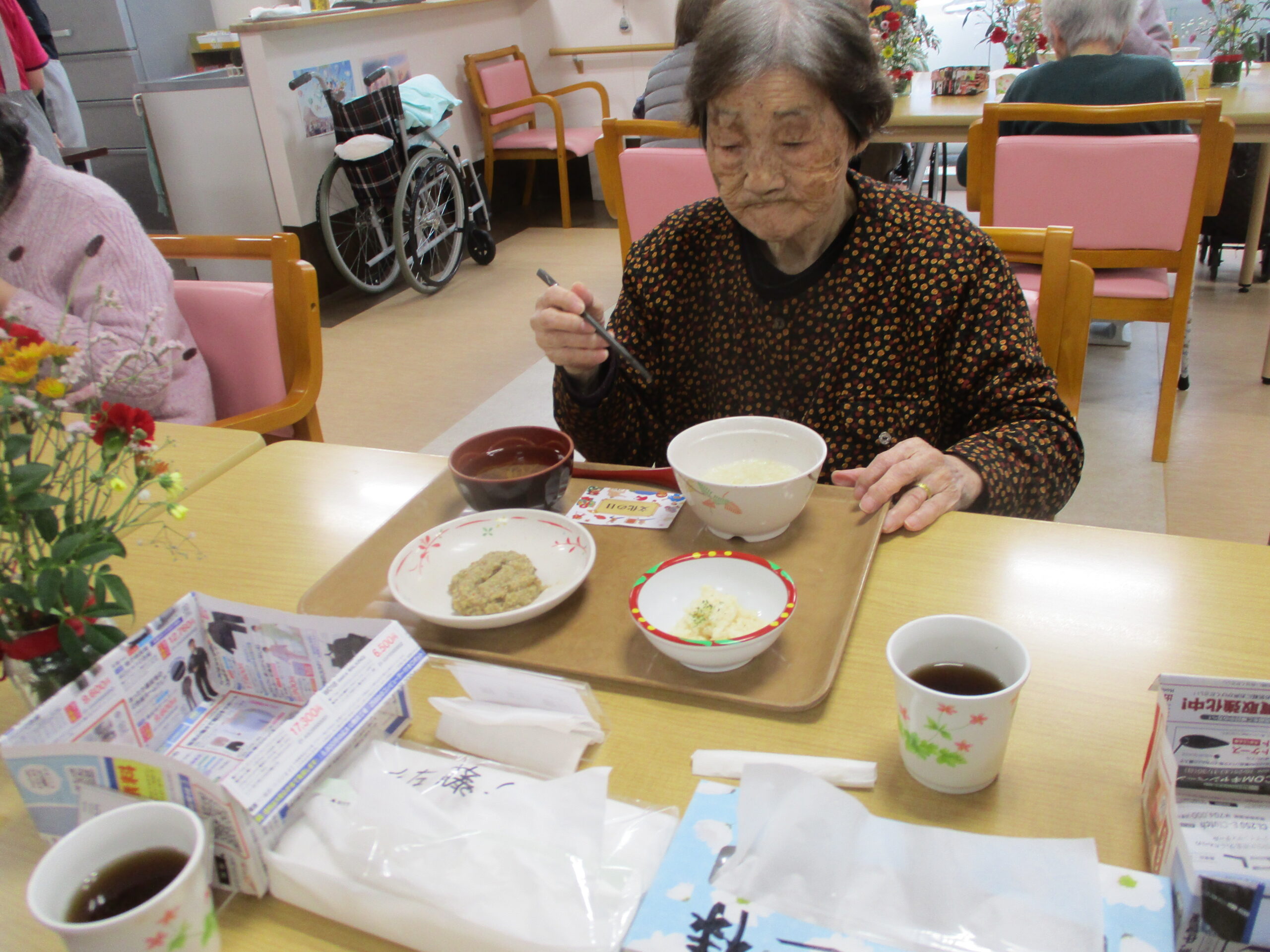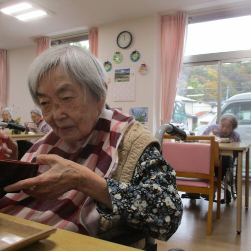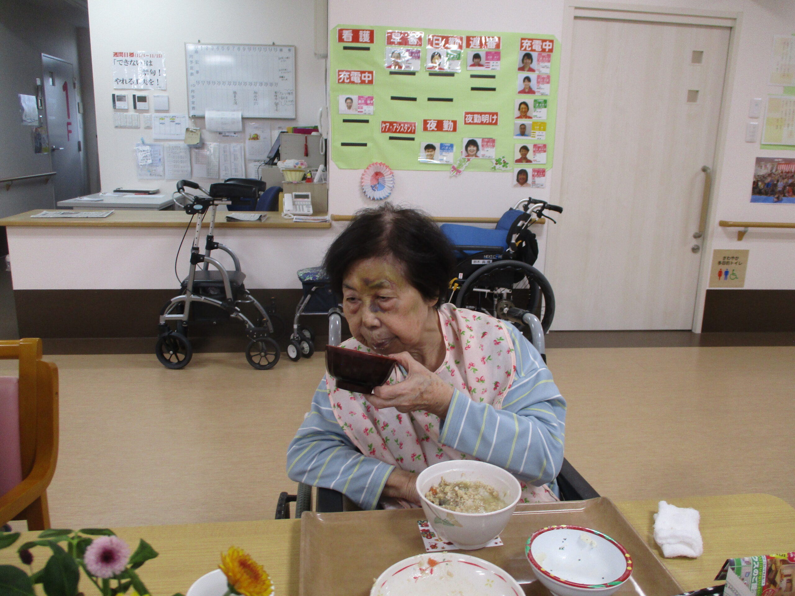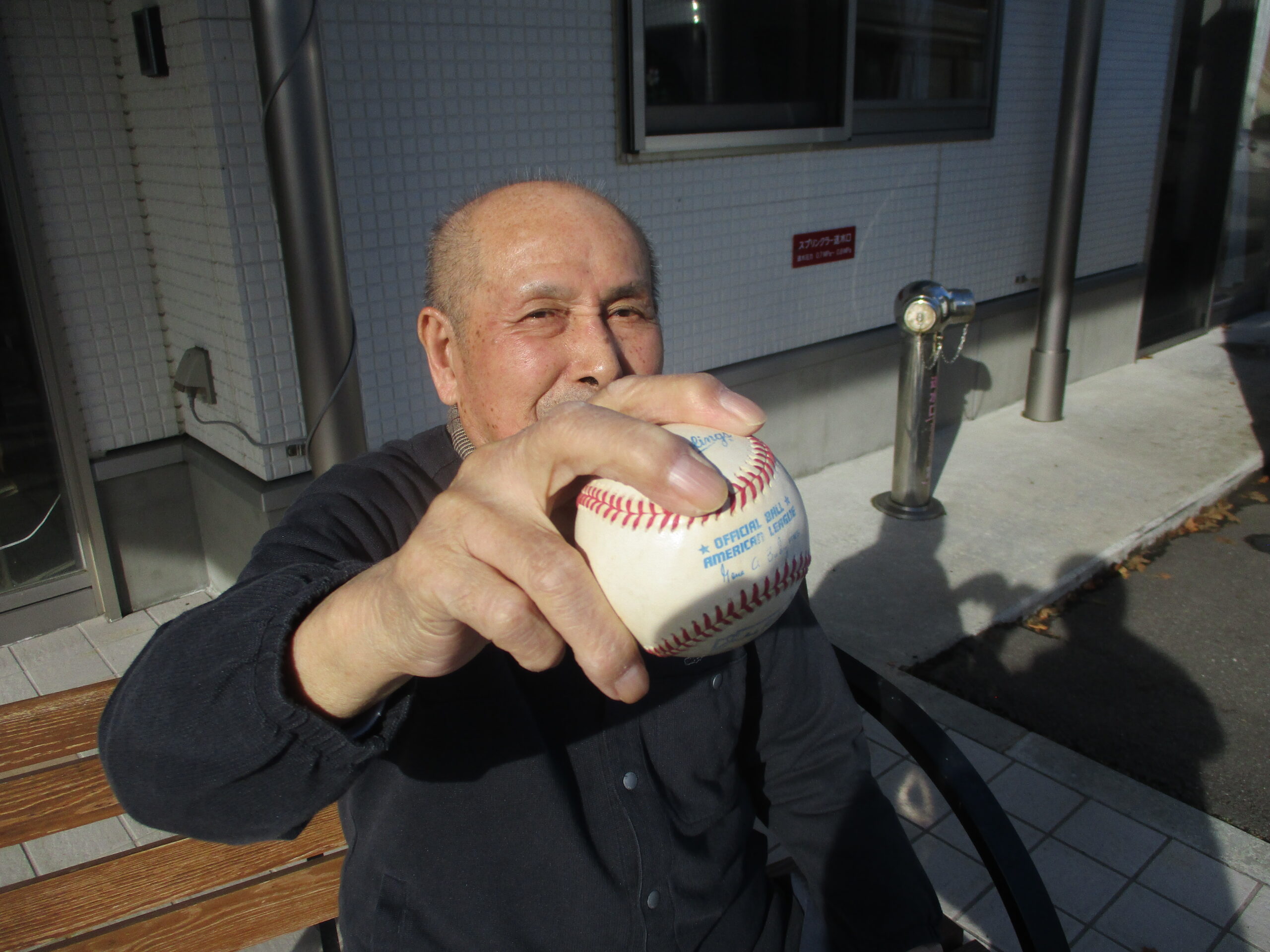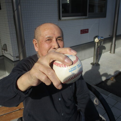 右手にボール持ってますね。「昨日メジャー見てとても感動した。」と話されておりましたので職員の野球ボール持って椅子に座り写真撮りました。いい気分転換になって良かったです。今日は昼食と散歩の様子でした。いかがでしたでしょうか?明日は3連休明けですが皆さんで頑張っていきましょう。では明日のブログもお楽しみに。