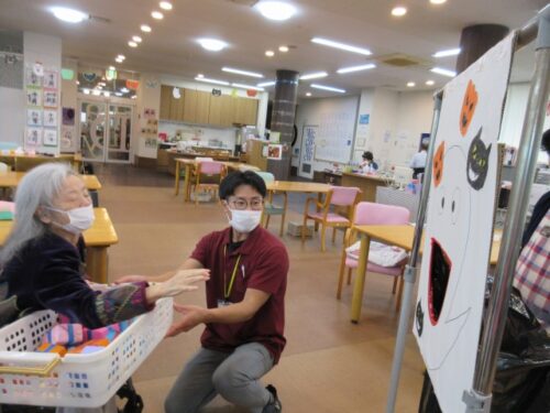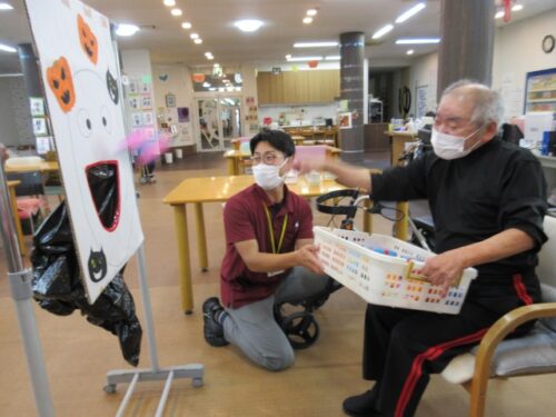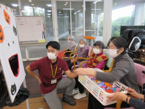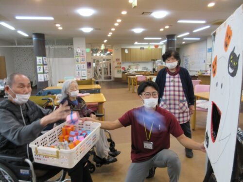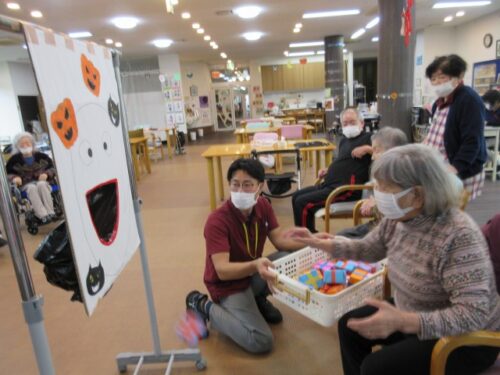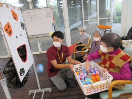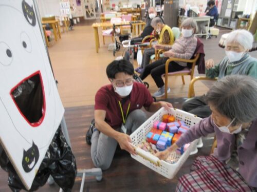 ハロウィンゲームでは、オバケの機嫌を損ねないよう、オバケの口に🍬お菓子🍫を入れるというゲームをしました!