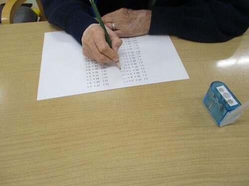 さわやかグループホーム むろらん 真剣です、! 2025-11-08 2025-11-05 皆様に鉛筆を使っていただく手の体操と頭の体操を行なっていただきました! 昔そろばんを習っていた方が多く、計算がとてもはやく職員も驚きでした! 漢字も達筆な字を書いていて素敵でした!! これからも習慣にしていけたらと思います!
