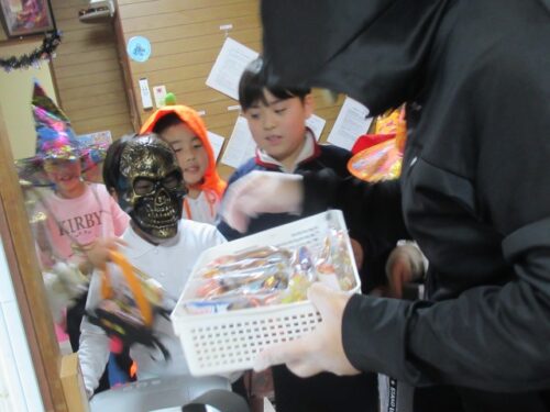 一人一つずつハロウィンパーティのお菓子を貰い、