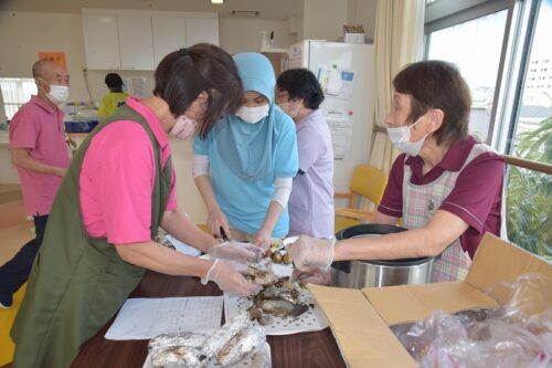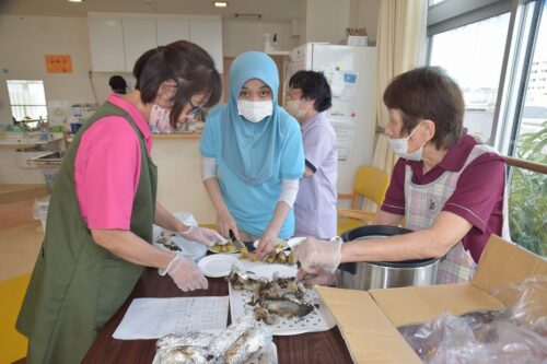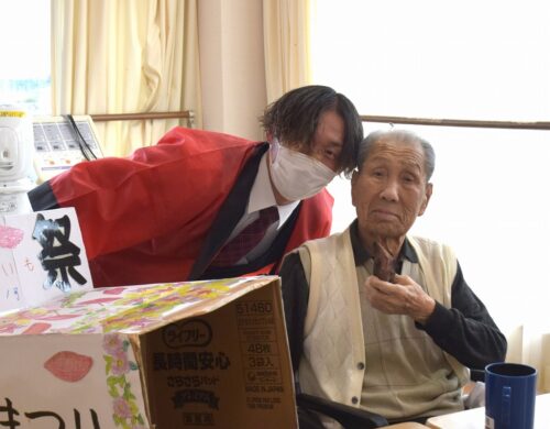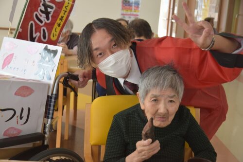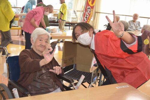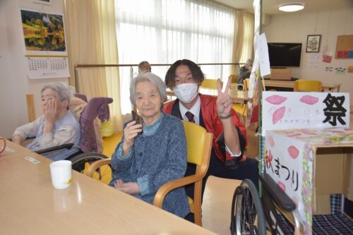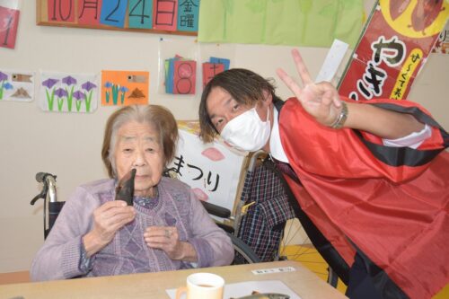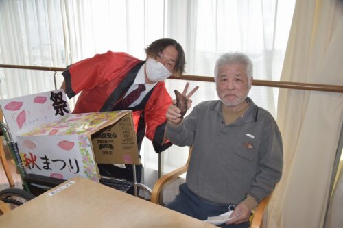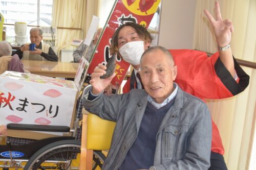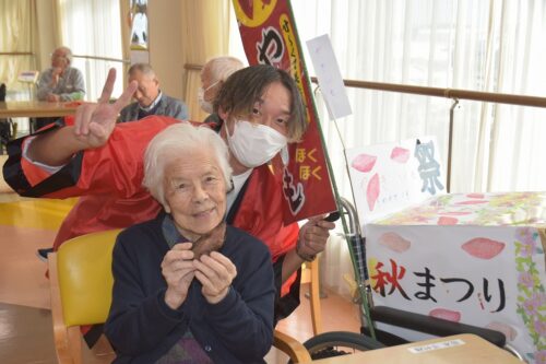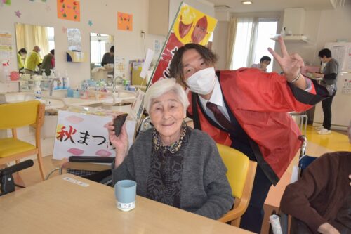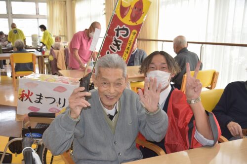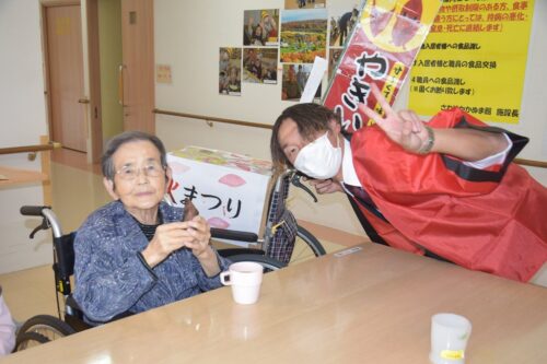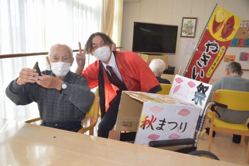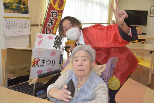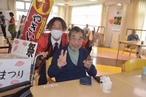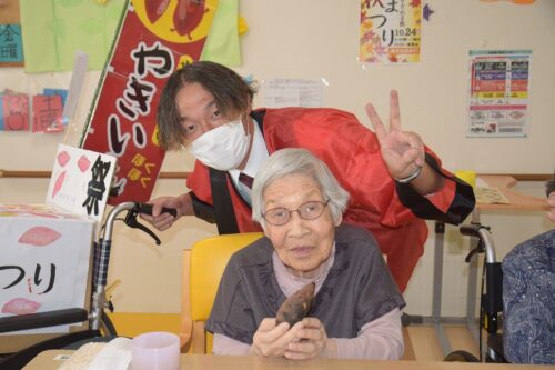 秋祭りイベントの午後の部は焼き芋を各フロアのご利用者さま一人ひとりに