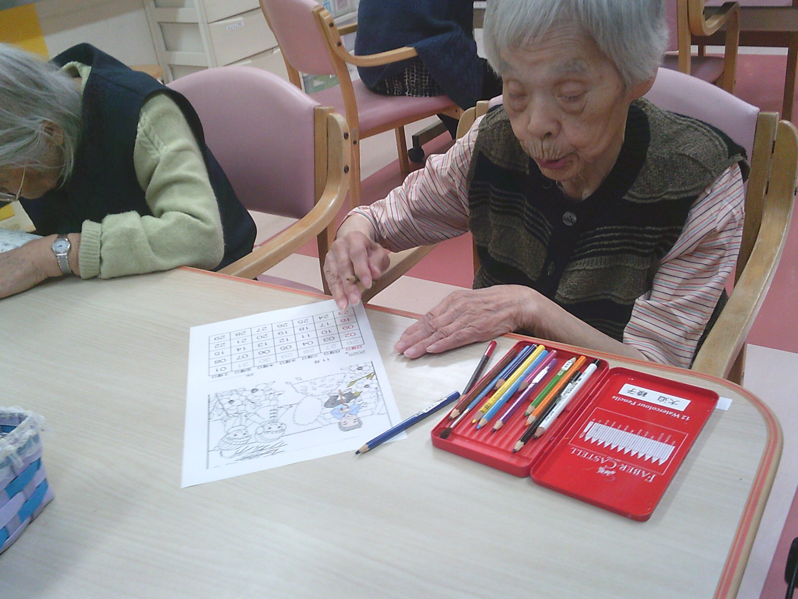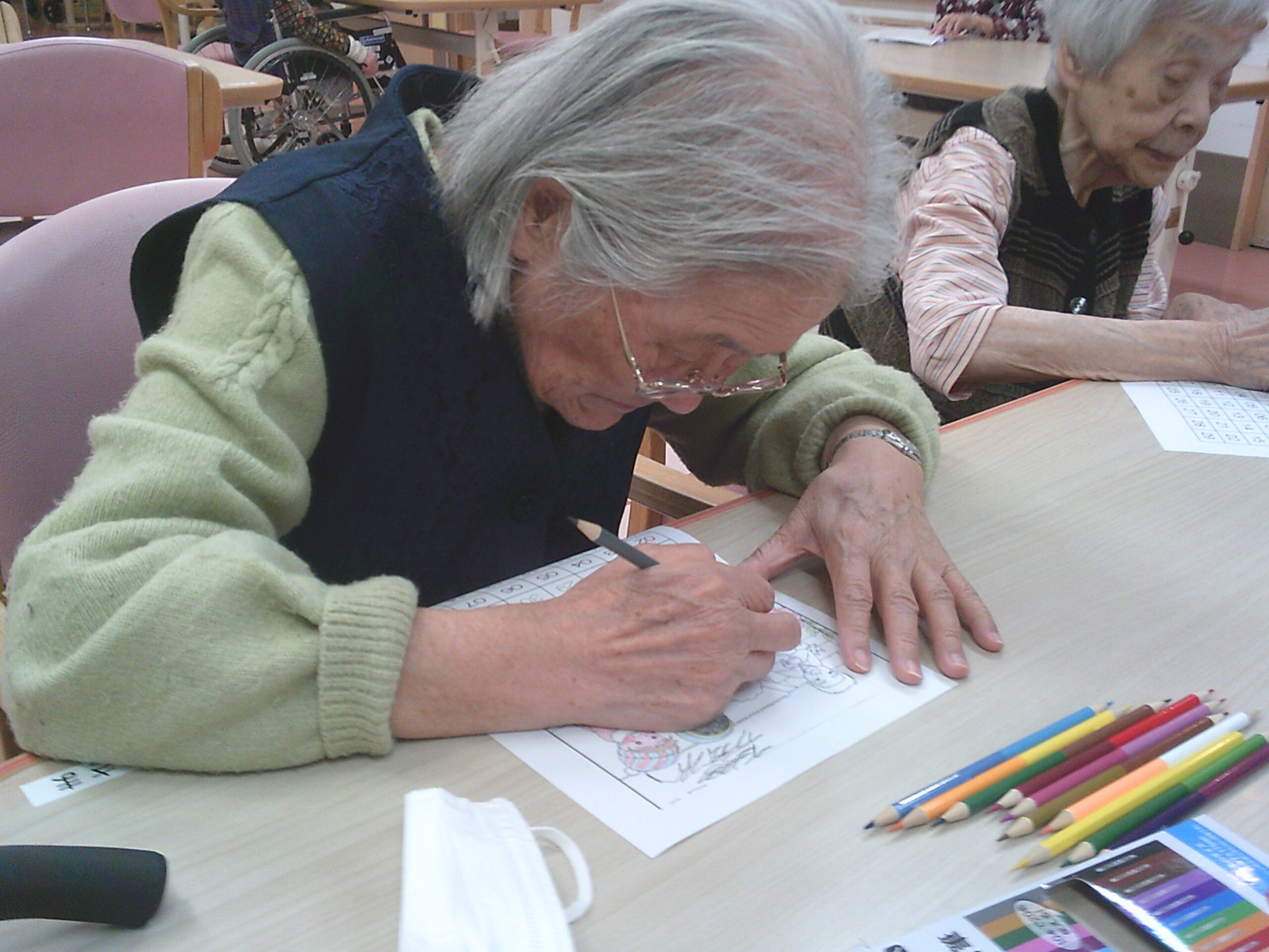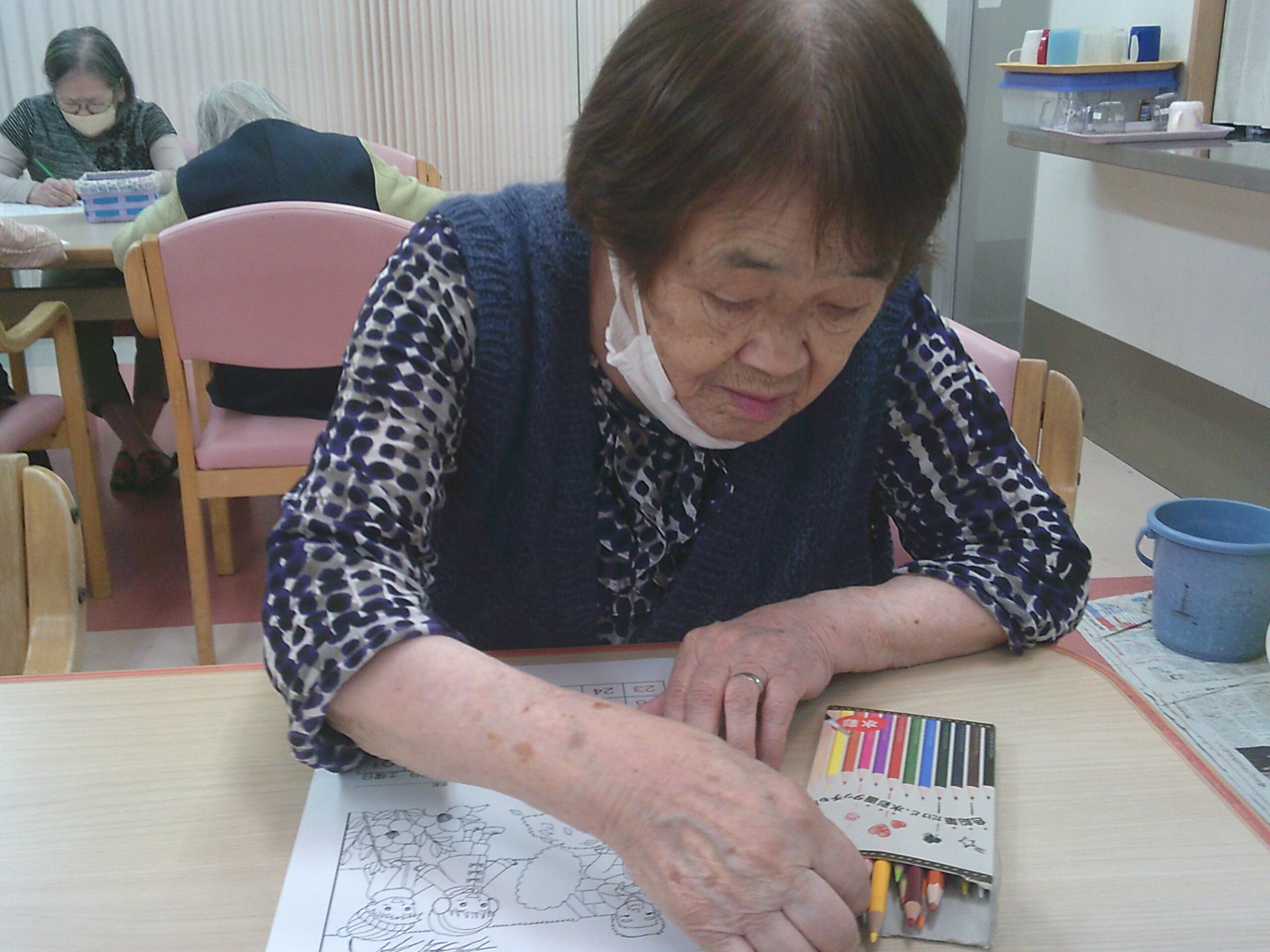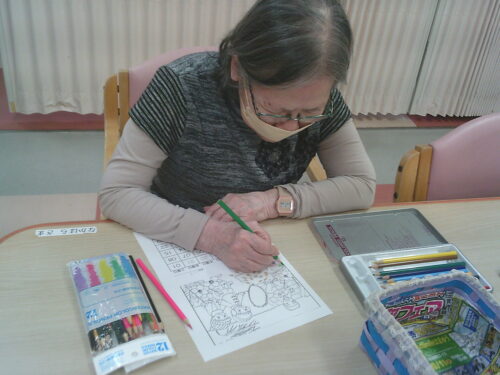 さわやか花美弐番館 さわやか花美館 趣味の会 2025-11-07 2025-11-05 月初めの趣味の会はカレンダーの塗り絵作成と麻雀をしました 寒くなってきた11月の塗り絵は子供たちが焚火をする絵にしました 迷いながら選んだ色はそれぞれ個性があり、上手に仕上がりました!! こちらは顔なじみのメンバー! フロアの階が別ですが、毎回、同じメンバーなので仲良くなりました 今日は麻雀を覚えたての職員が一緒に参加し、初めて勝ちました!! 入居者様からは「勝たせてあげたの!!」と負け惜しみ(笑) 皆でわいわいできて楽しかったですね( ´∀` )