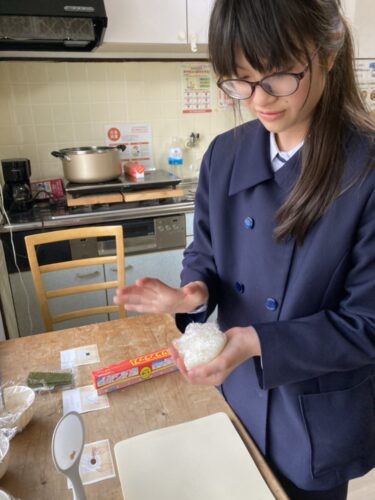 ラップをちぎったり、ご飯に具材をのせたり、ちょうどいい力加減で握って形を整えたりと、集中して作業に取り組んでいました。