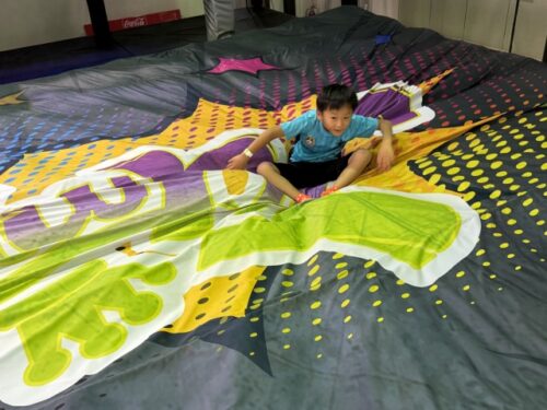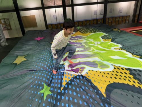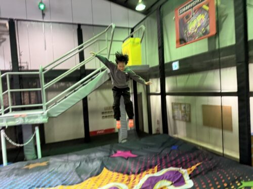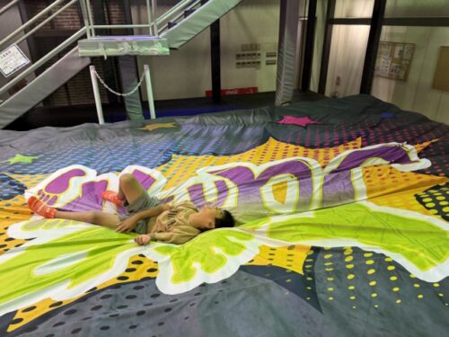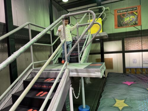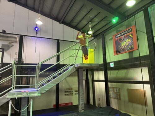 ジャンプ台から下の大きなトランポリンにジャンプするコーナーや、