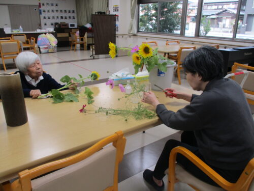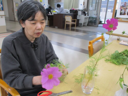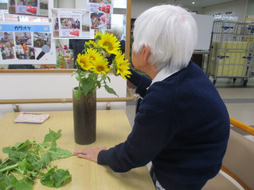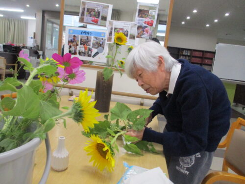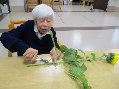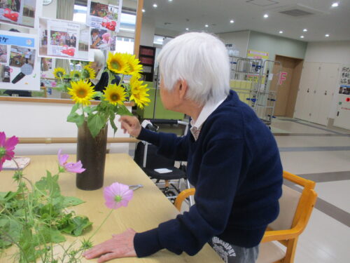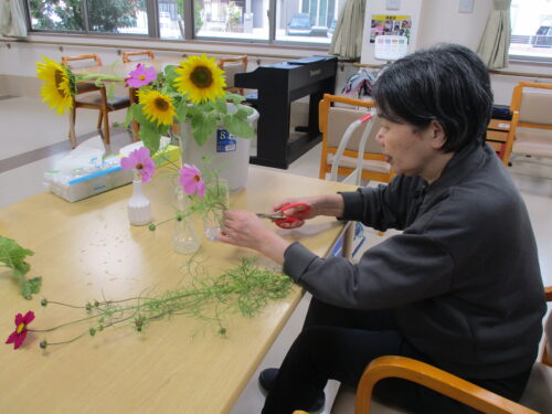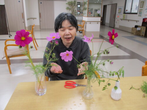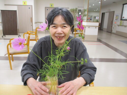 素敵な花瓶もあったので、御入居者様のセンスにお任せして生けてもらっています!