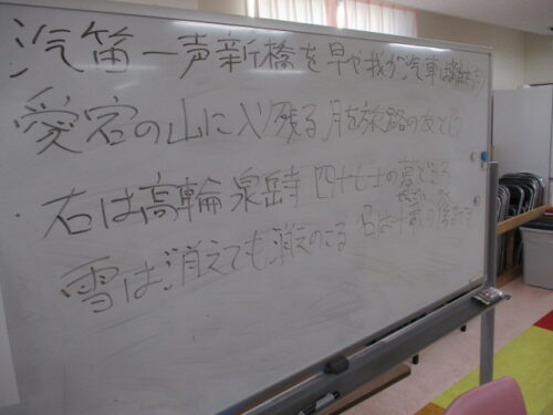 最近皆様お気に入りになっている「鉄道唱歌」を歌って今日の体操は終了です!