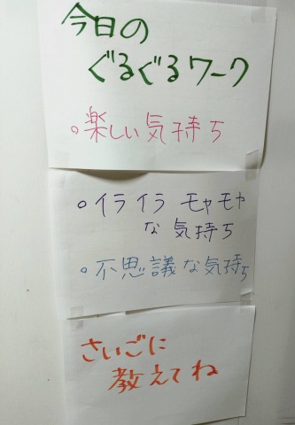 今日のぐるぐるワーク 慣れた子もいるのですが、毎回何かしら変化をしています。同じ作業は面倒なのですが、手を動かす事で色んなイメージが浮かび、前回は鉛筆で力を入れたぐるぐるだったけど、今回は色ペンを使って優しくぐるぐるなど、考えながら楽しい時間を過ごせました。   担当 藤木