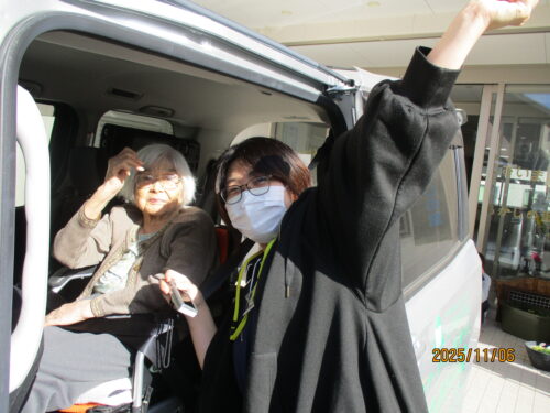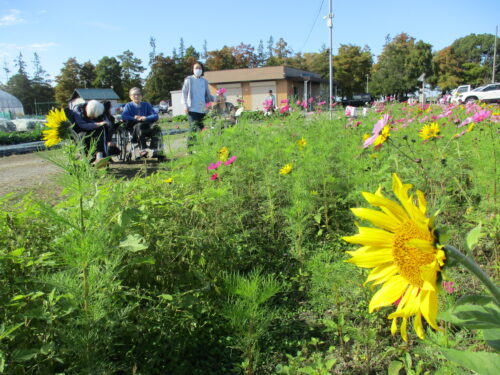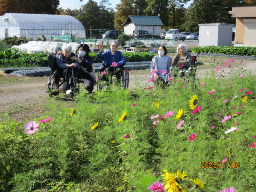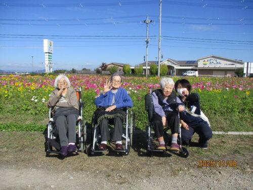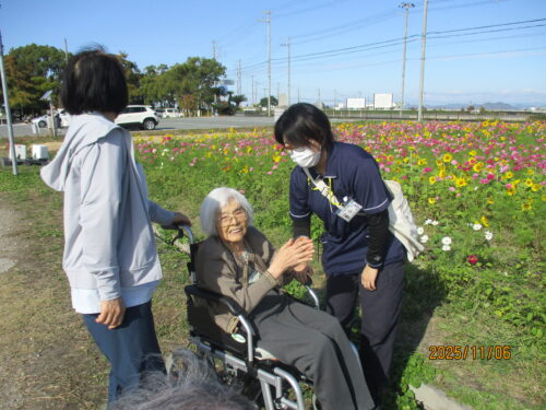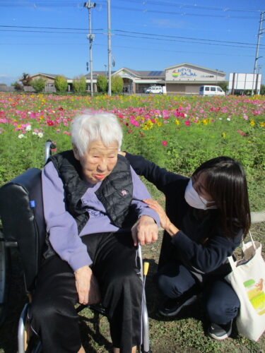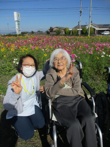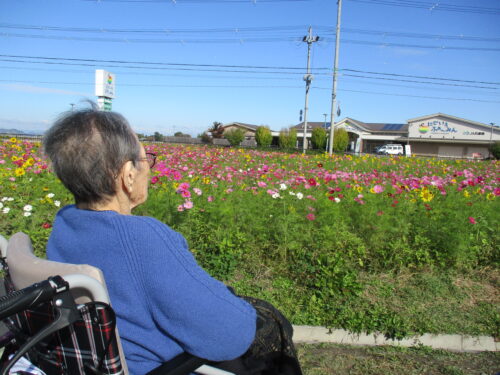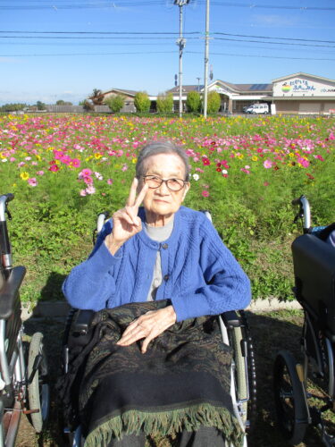 普段俯いている御入居者様も顔を上げてお花を見て下さっています✨🌸