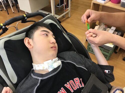 こちらの利用者様は、スタッフと一緒にモールを持ってねじねじ…