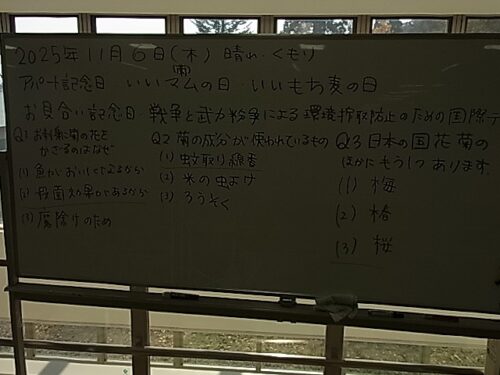 さわやか室蘭弐番館 2階 6日活力朝礼♪ 2025-11-07 2025-11-07 皆様こんにちは♪ 昨日の様子をお届けします 一日のスタートはラジオ体操です カメラに向かって手を上げて下さいました 頭の体操は三択クイズです 笑顔溢れる一日になります様に☆