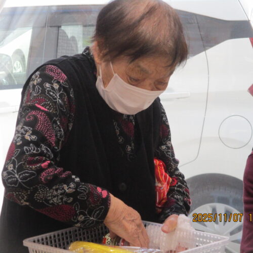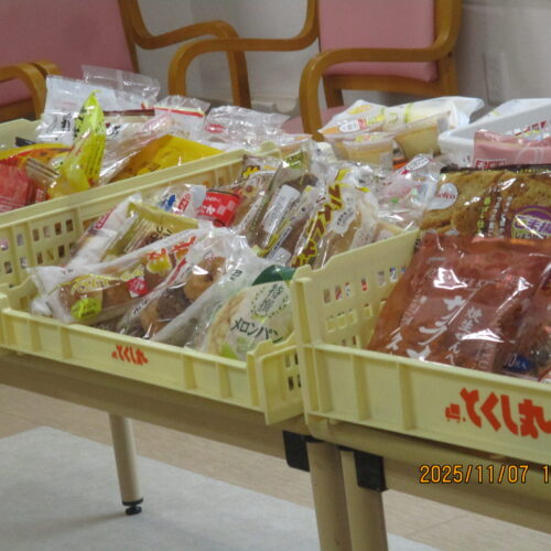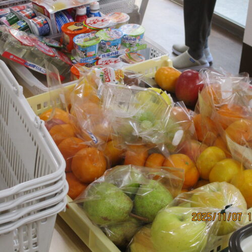 皆さんどれを買おうかそれぞれ見ながら買っておりますね。今日は果物を購入されている方や、お菓子、飲み物等沢山購入されている方々がいました。