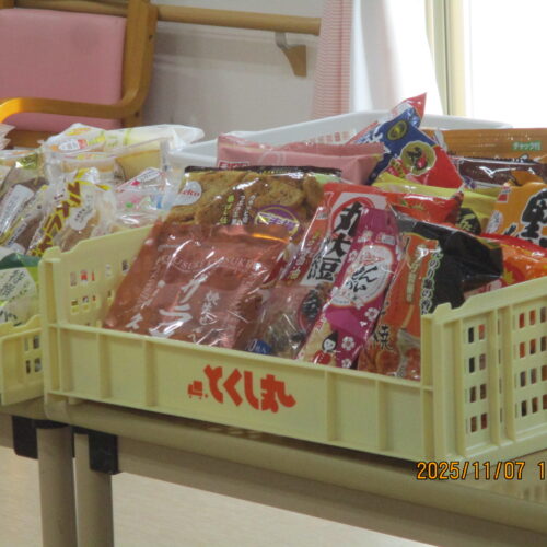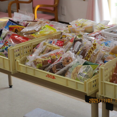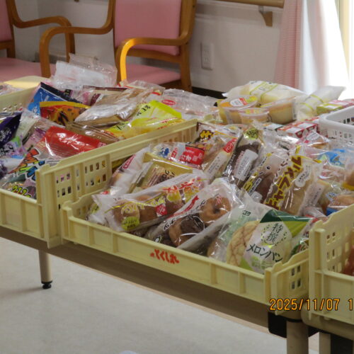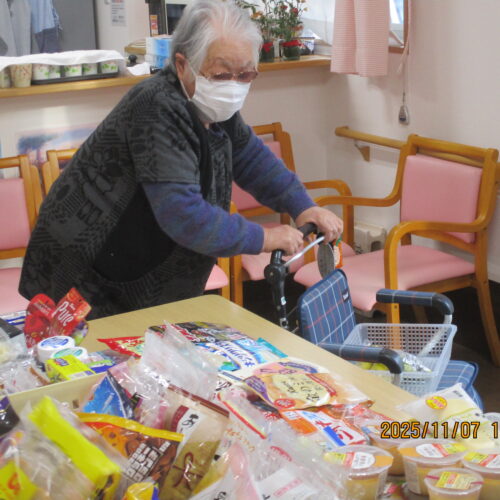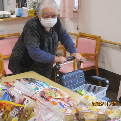 果物やお菓子、飲み物等たくさん販売されております。ご入居者様は今日どんな買い物をしたのかなぁ。
