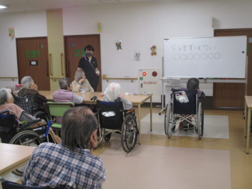 さわやか和歌山館 さわやか和歌山館 最新情報 未分類 本日のレク 2025-11-12 2025-11-21 こんにちは!さわやか和歌山館です。 二階でレクリエーションをやってたので、その時の様子です。 今回は、文字の並べ替えクイズ! みんなでわいわい会話をしつつ、楽しいレクの時間となりました☆ 担当:大島 歩