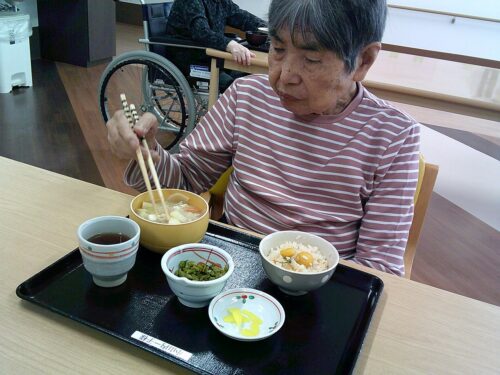 さわやかグループホーム むろらん お昼ご飯です 2025-11-10 2025-11-08 栗ご飯と豚汁です これからの季節は暖かい汁物が欲しくなりますね 楽しい昼食のじかんでした、ありがとうございます