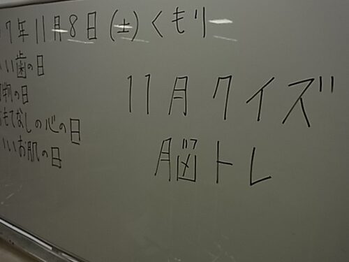 さわやか室蘭弐番館 2階 8日活力朝礼♪ 2025-11-09 2025-11-08 皆様こんにちは♪ 昨日の様子をお届けします 日付と天気の確認です 続いてラジオ体操です 頭の体操は11月クイズに挑戦です 画面に映し出されるクイズに答えていきます 楽しい一日になります様に☆