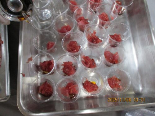 少しづつですが試食もいいね。(⌒∇⌒)お昼は、マグロ丼です。