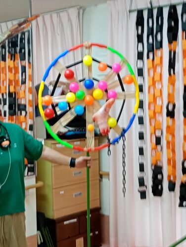 フラフープにガムテープをつけたものを用意して