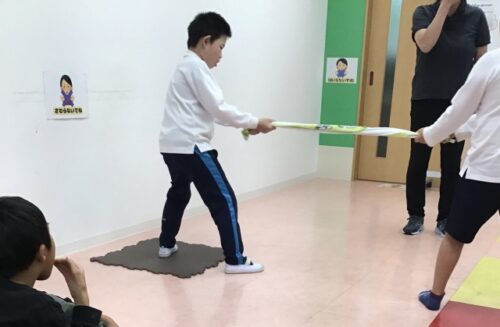 身近にあるタオルを使っての力比べ、大盛り上がりでした‼️