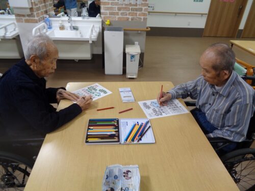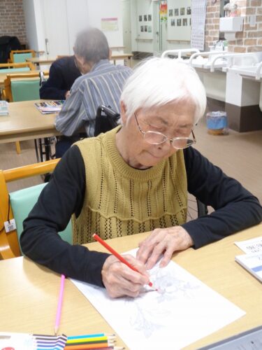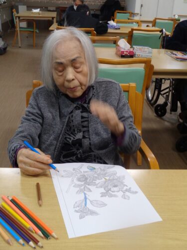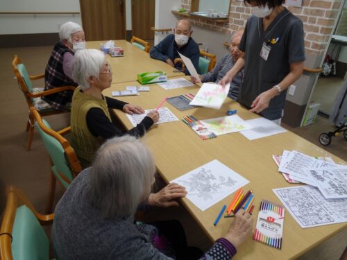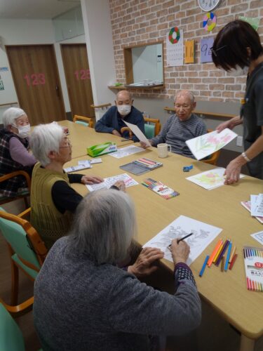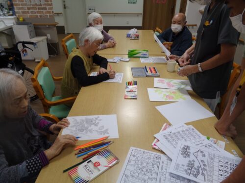 おけがわ館では昨日は室内でぬり絵レクを行いました🌠🥰