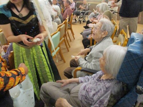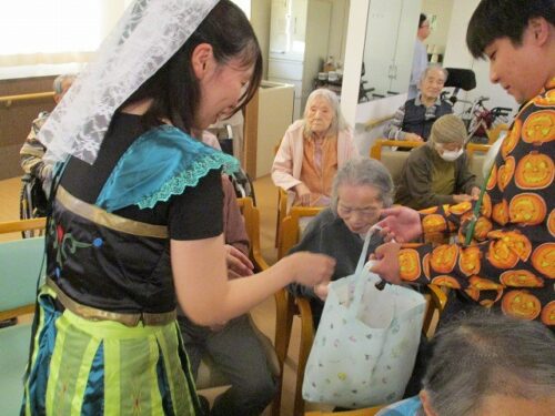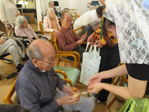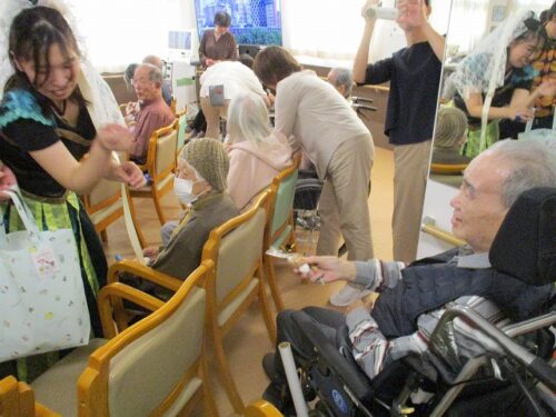 新郎新婦からご入居者様へお菓子をお渡し致しました😊