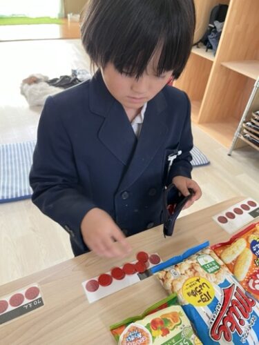 「あと何枚残っているかな?」「これとこれを買うと100円超えちゃう!」といったやり取りを通して、予算内でやりくりする計画性に繋がる活動になりました!