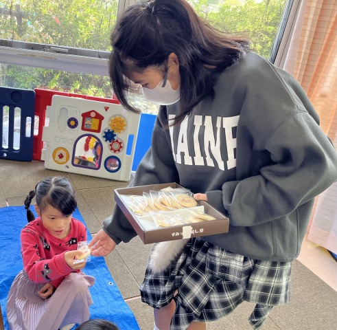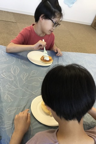 自分たちで作ったホットケーキ🥞は特別~🙌おいしいね~😋