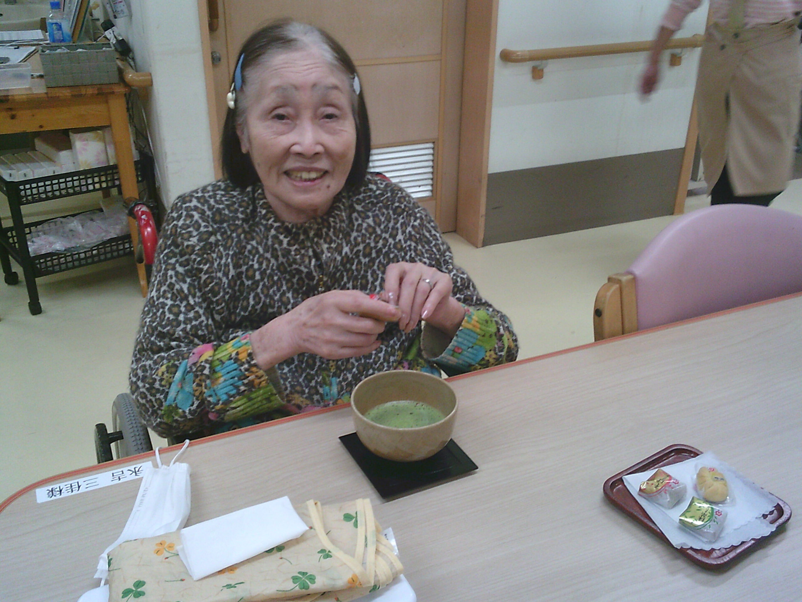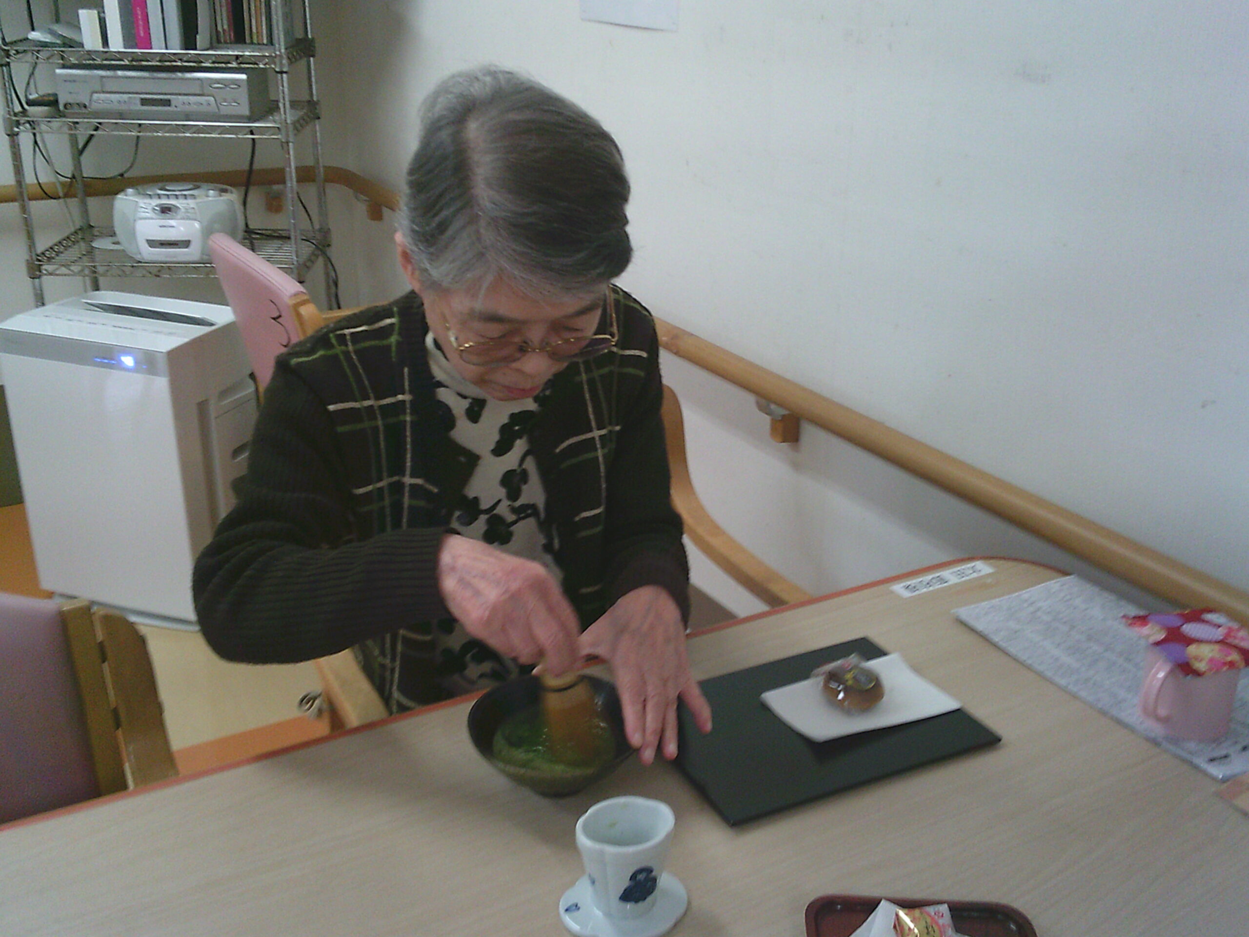 さわやか花美弐番館 さわやか花美館 趣味の会 2025-11-16 2025-11-13 今回の趣味の会は抹茶を点ててのお茶会です!! Digital Camera 茶菓子も一緒にどうぞ おいしいと評判が良かったです こちらは自分で挑戦してみました ただ混ぜるだけと思いきや あわ?.。o○がたつように混ぜるとのこと おいしくいただきました!!