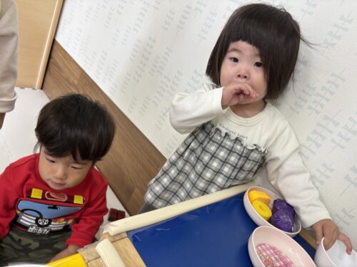 以前活動で使った、ぶどう🍇芋🍠を使って