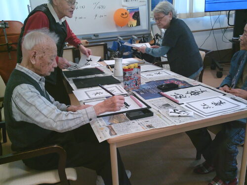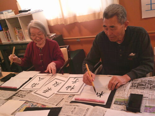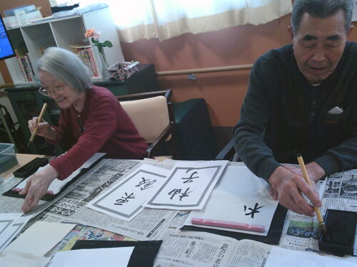 土曜日はお習字俱楽部です。だんだん上達しています。       さわやかひだか館 ブログ担当😃