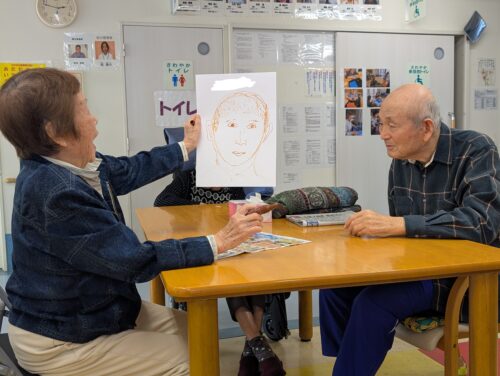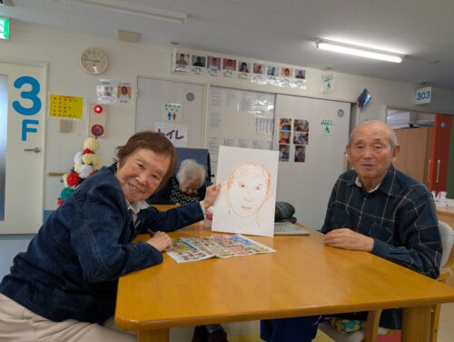 似顔絵を描いた入居者様に絵をお披露目です(^^♪