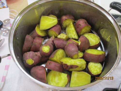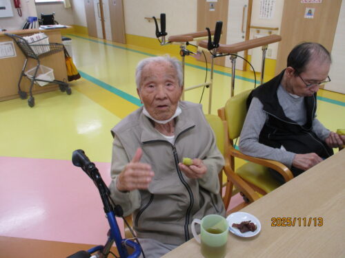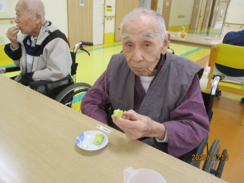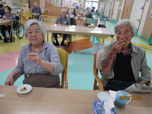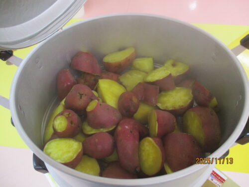 先日、入居者様と一緒に蒸し芋レクを行いました。