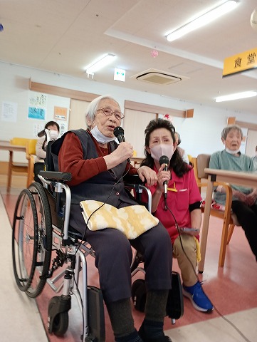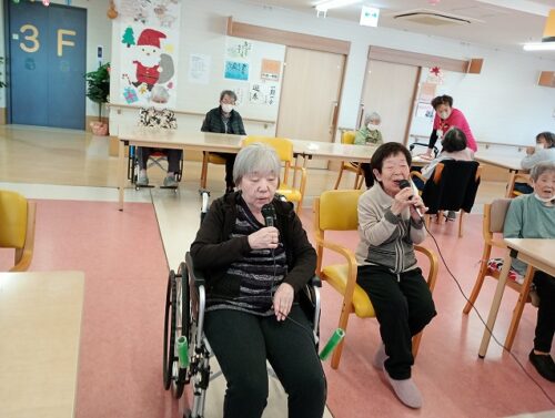 朝から入居者様同士「今日カラオケだな」と声掛けしてフロアに集まってきてくださります。