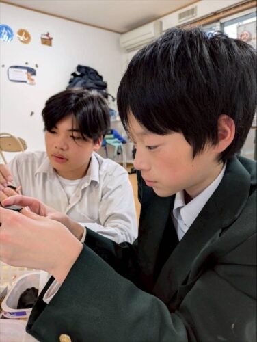 おやつはみんなでフルーチェを作り、冷凍クラッシュバナナにトッピングしミニパフェを