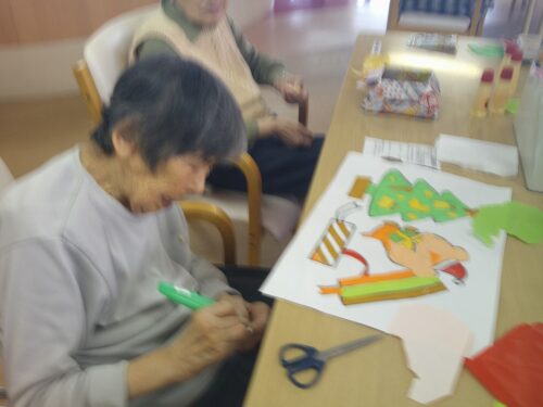 さわやか室蘭館 4Fちぎり絵作成中♪ 2025-11-17 2025-11-17 皆様こんにちは! 本日は、4Fのちぎり絵作成の様子をご紹介します(*^-^*) ほぼ毎日作品作りに励んでおりますよ🎵 ※どちらもブレてしまい申し訳ありません💦 作品が終了すると、「もっと作りたい!」 と意欲的な入居者様なのです(`・ω・´)✨