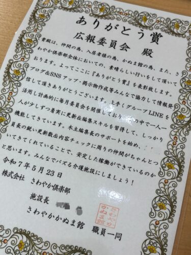 さわやかかぬま館 表彰していただきました【さわやかかぬま館】 2025-11-17 2025-11-17 少し前になりますが、毎月行われる職員会議で表彰していただきました👏✨ そして委員長の私も個人で表彰していただきました🥰 嬉しいですね💗励みになります😌🌟 担当☺見目