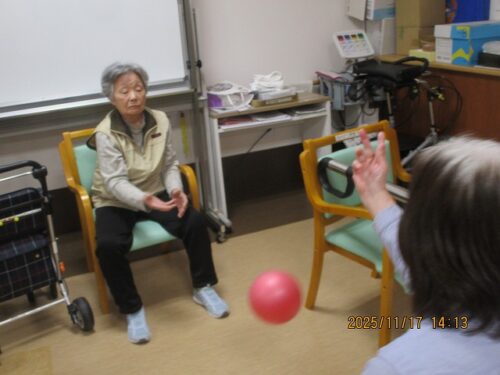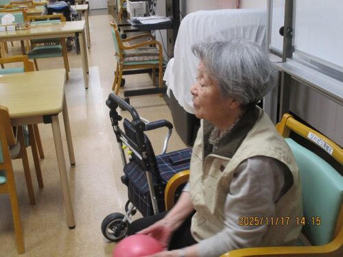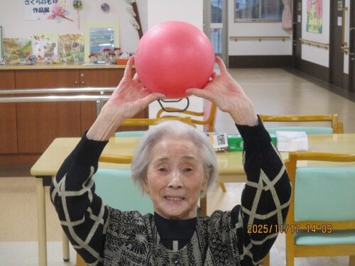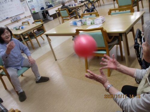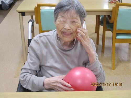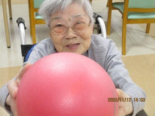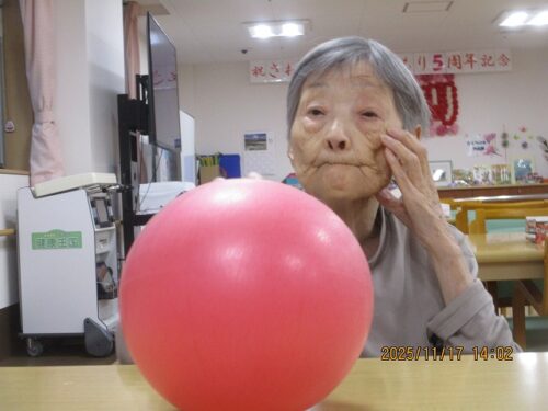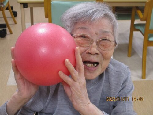 さて、今日はオヤツの前にボールを使って体を動かしました。