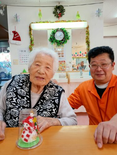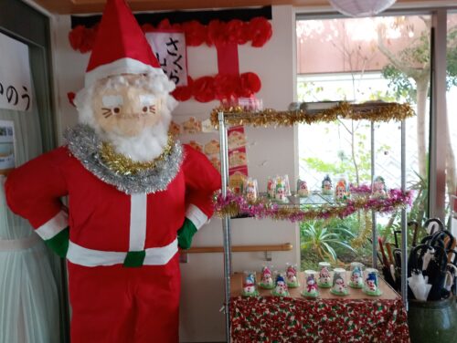 職員特製の大きなサンタさんと一緒に
