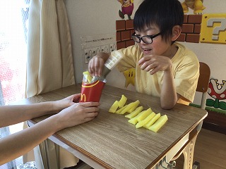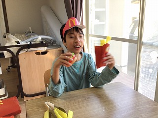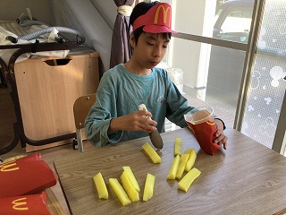 ポテトとハンバーガーを作ることができ職員に披露🌟
