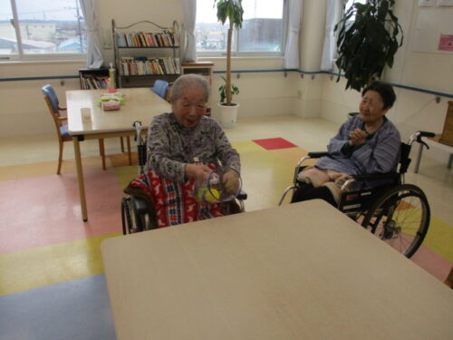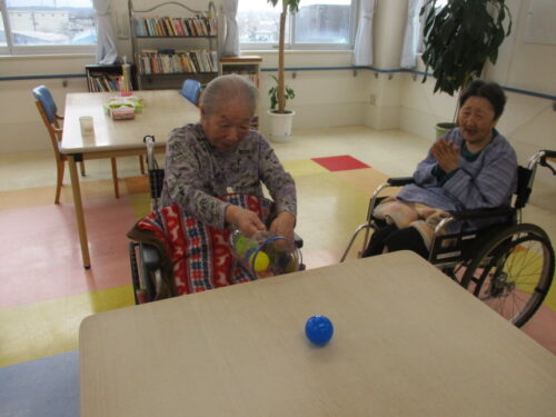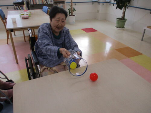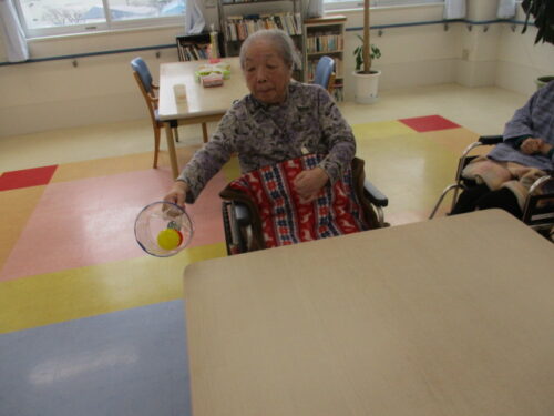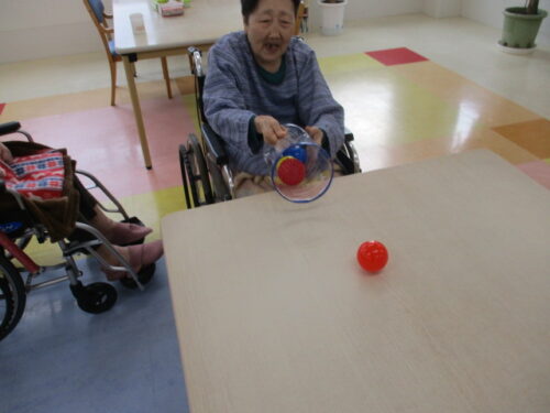 午後には次回のスポーツレクで行う予定のボール遊びを4Fの入居者様に先行体験して頂きました!